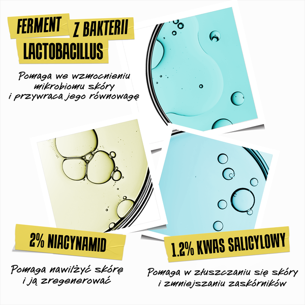 Serum punktowe z efektem plastra, z 2% kwasem salicylowym. Opracowane, by w zauważalny sposób zmniejszyć widoczność niedoskonałości i przebarwień.